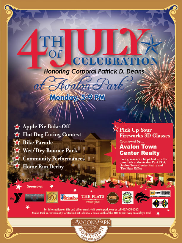 Avalon Park Fireworks Video Avalon Park Fireworks Map (Click on Map for Directions) Avalon Park Fireworks Description Avalon Park is a neotraditional community in east Orlando whose town center has a similar look and feel to a Celebration, Florida or Baldwin Park. Avalon Park celebrates the 4th of July with apple pie bake-off’s, hot dog… Continue reading Avalon Park Fireworks
