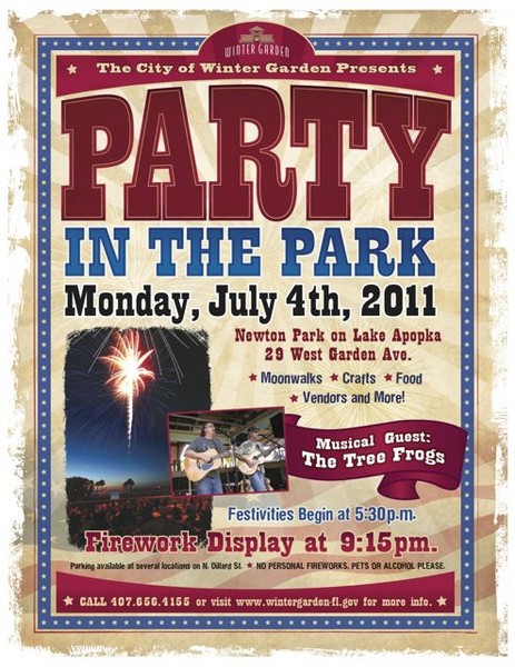 Winter Garden Fireworks Video Winter Garden Fireworks Map (Click on Map for Directions) Winter Garden Fireworks Description Winter Garden has their annual 4th of July Celebration each year with fireworks over Lake Apopka. The festivities begin at 6pm with different games and activities taking place in Newtown Park that have included craft vendors, moonwalks, and… Continue reading Winter Garden Fireworks Party in the Park over Lake Apopka